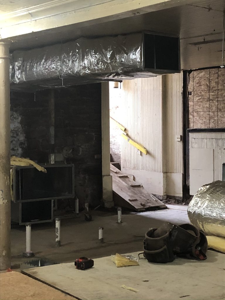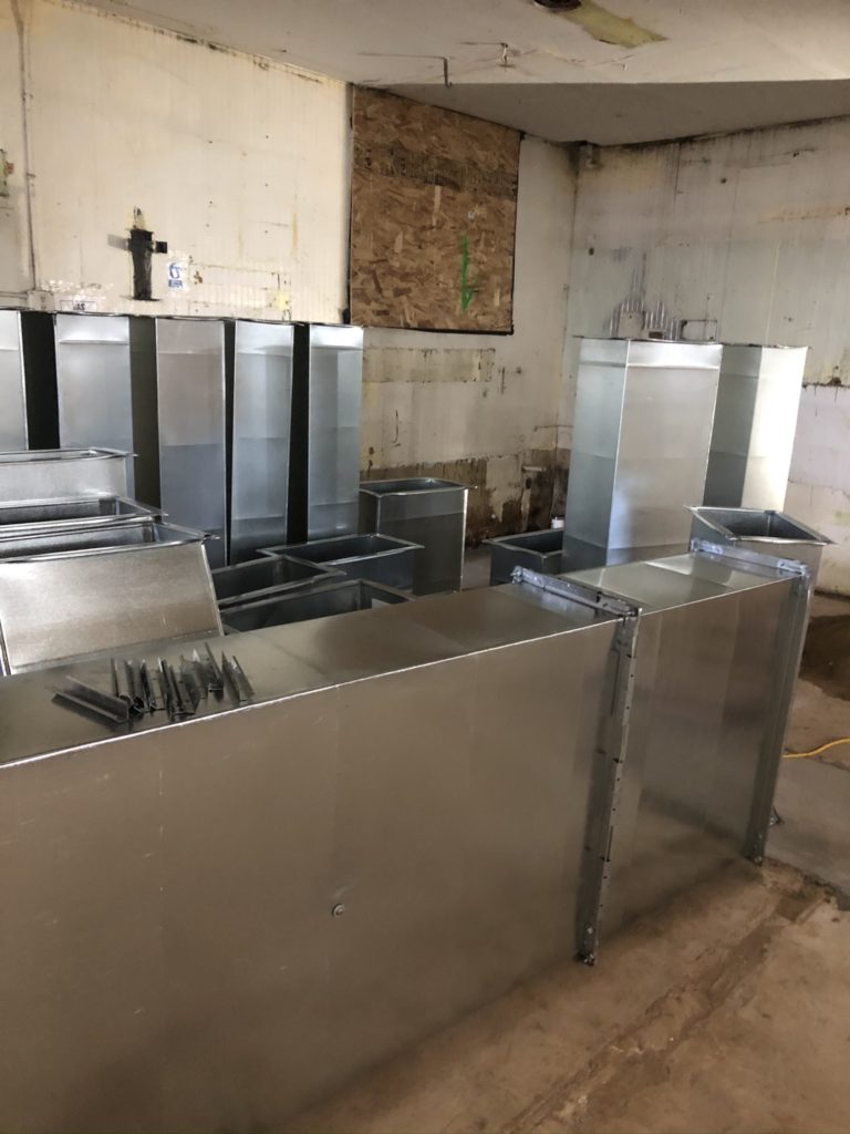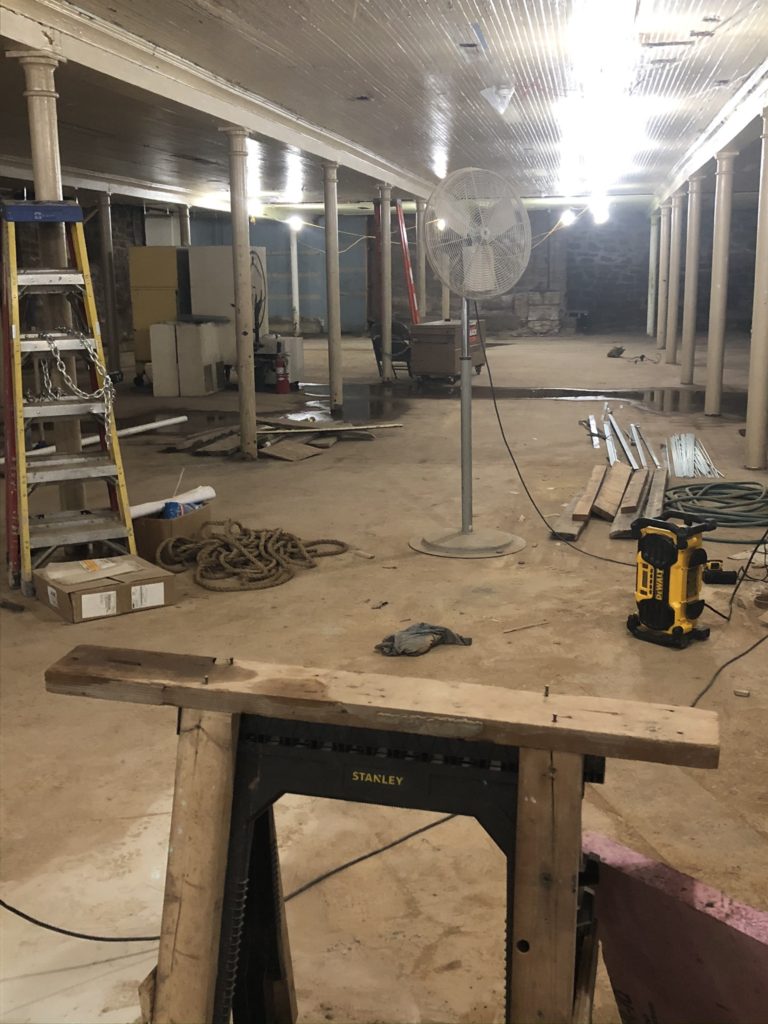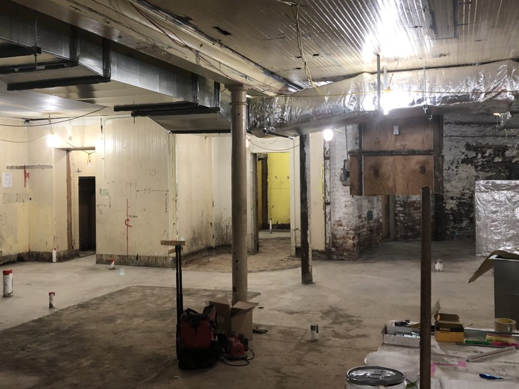 Many transformations are happening! Ducts are being installed allowing for the shelter to be air conditioned come the summer, and rather than sheet-rocking the walls, a durable cement coating is being applied, sure to brighten the basement up!