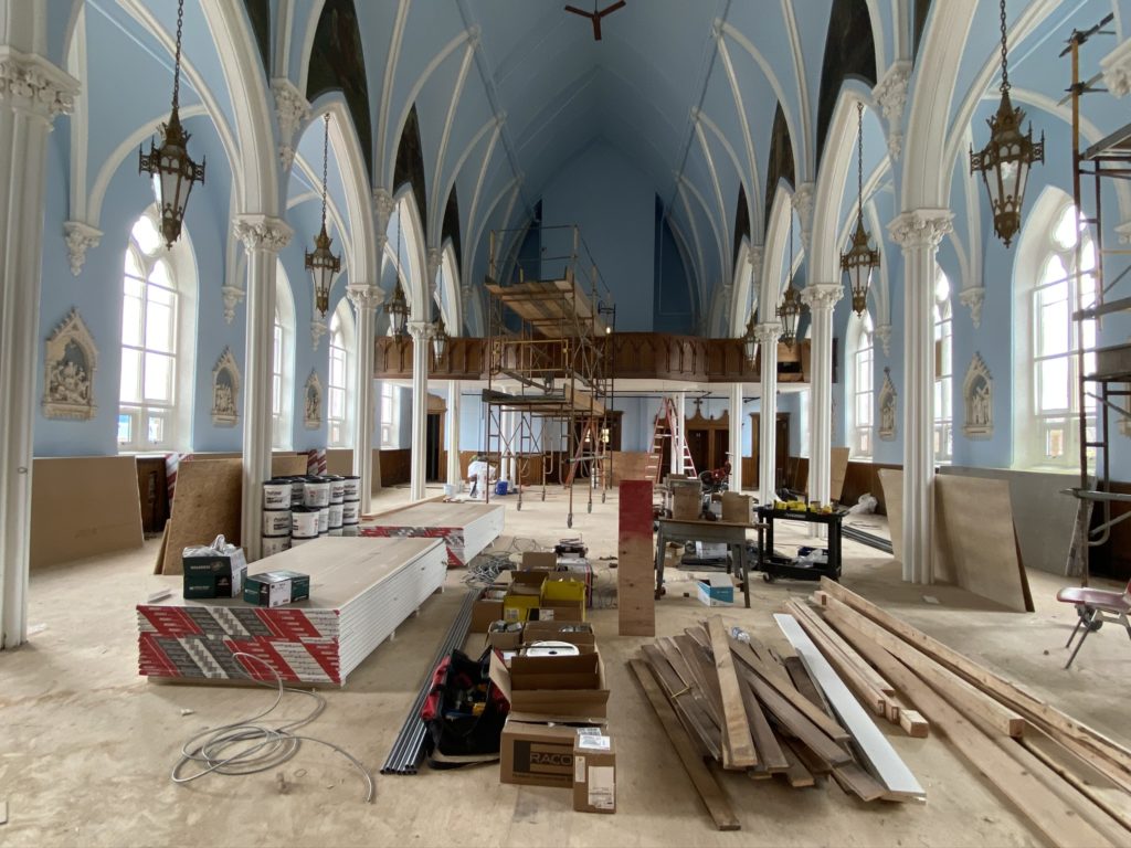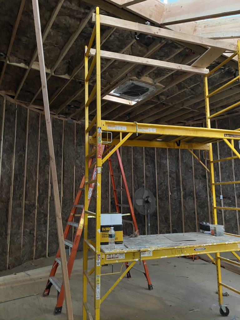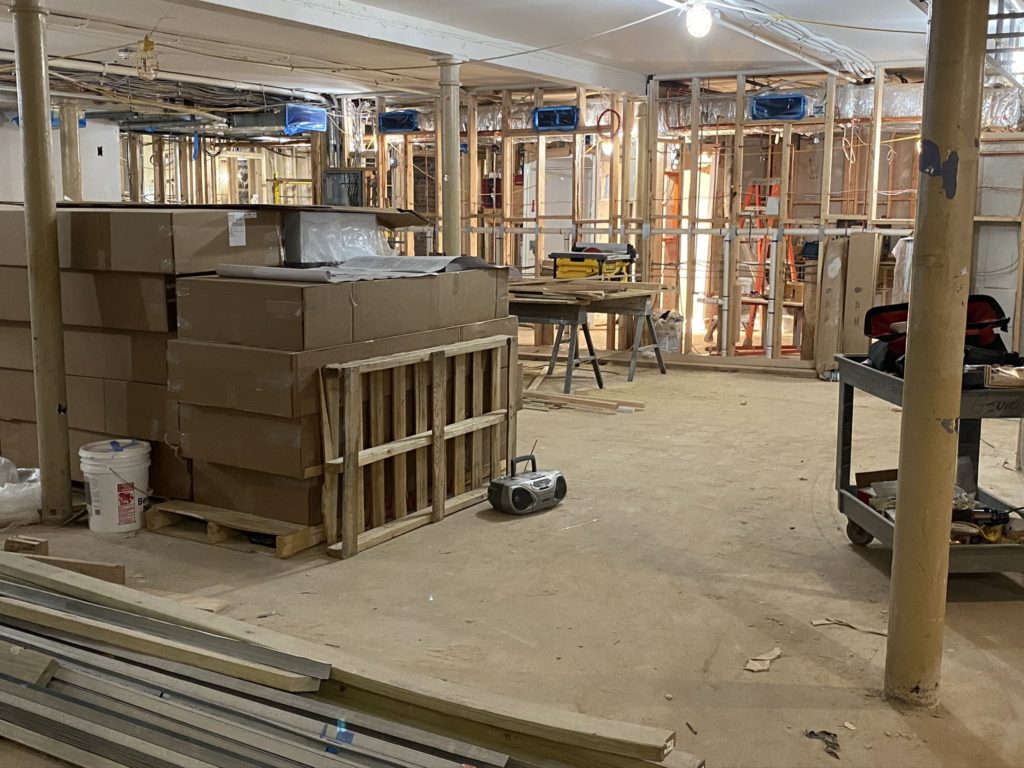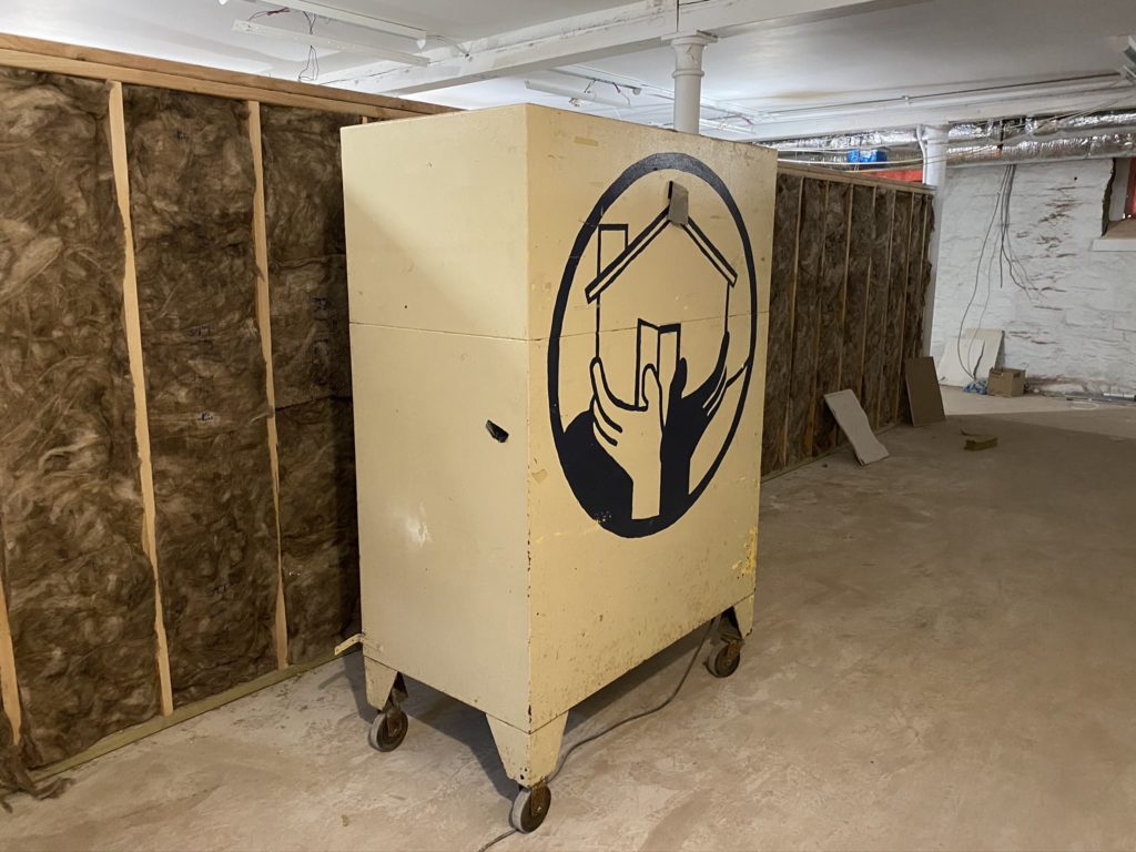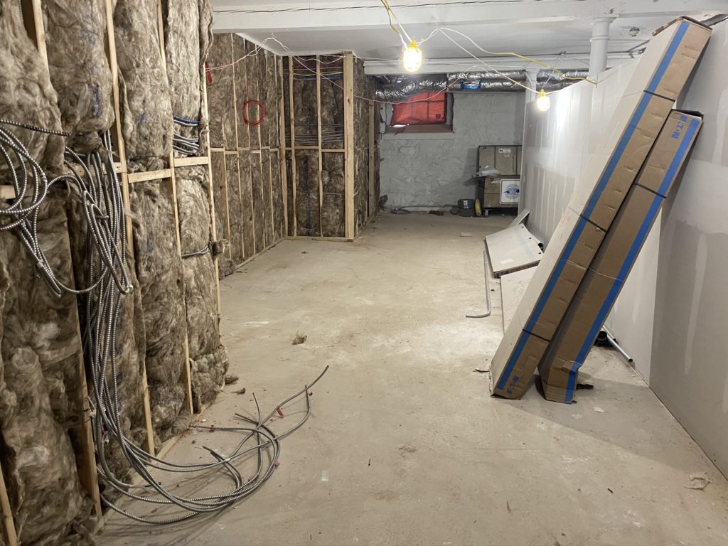 Earlier this week, insulation was installed throughout the building on what will soon enough be offices, a medical clinic, conference room, and by the dormitory area. More sprinklers were installed, and framing continues on the basement windows. Click on the photos for captions.