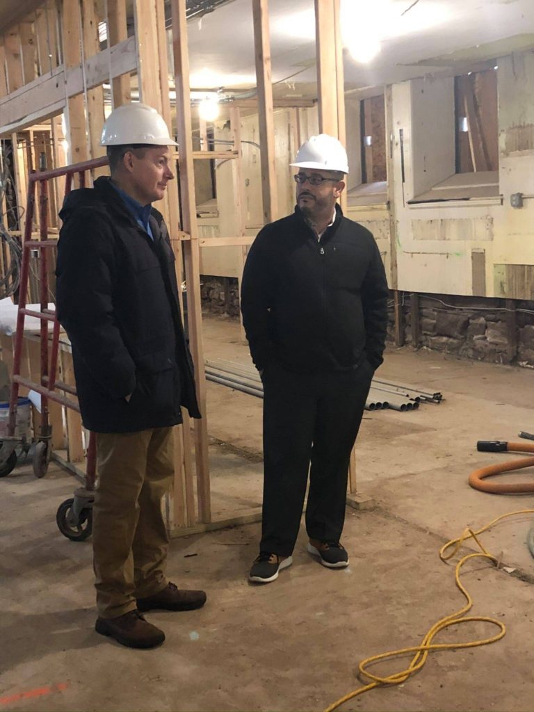 This week we had the pleasure of showcasing the progress of the renovations to Jason Rojas, State Legislature and Chief of Staff, Assistant VP of External Affairs at Trinity College and Carlos Espinosa, Director, Office of Community Relations & Trinfo.Cafe. We are fortunate to have the continued support of Trinity College and were happy to provide a hard hat tour.