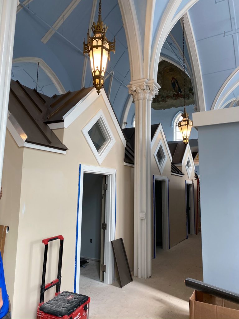 Soon, ImmaCare will announce a collaboration which will add unique programming to the many services ImmaCare already provides. We can’t wait to share this with you. This week, metal roofs were installed on the special program rooms built on the first floor of the former church.