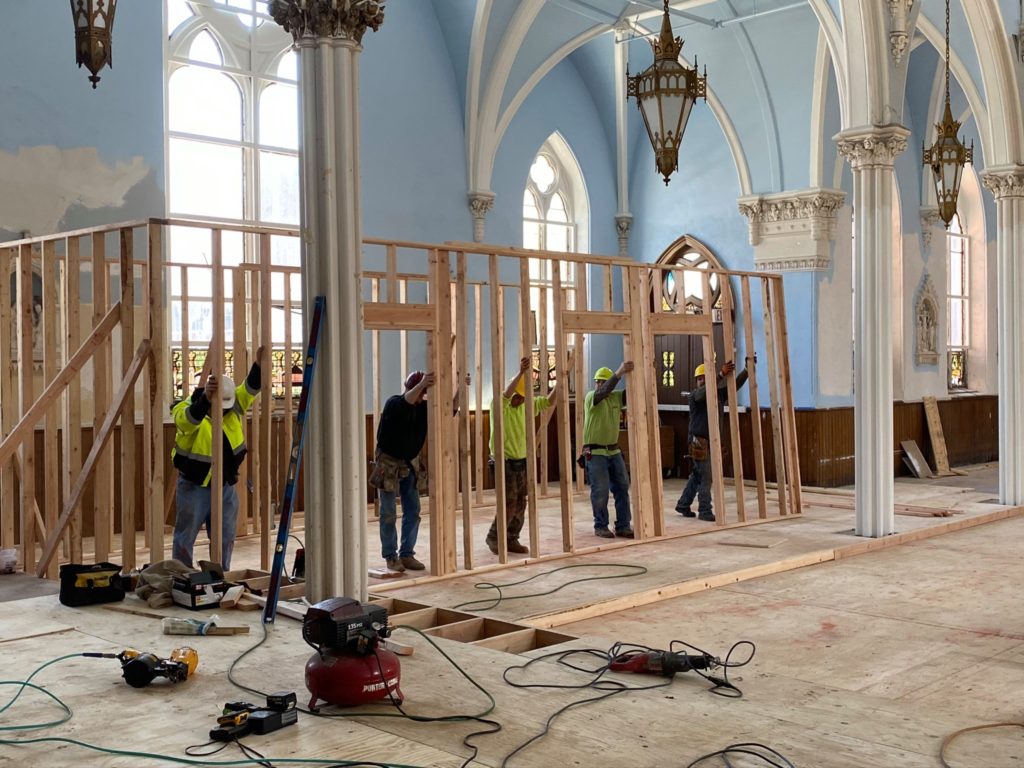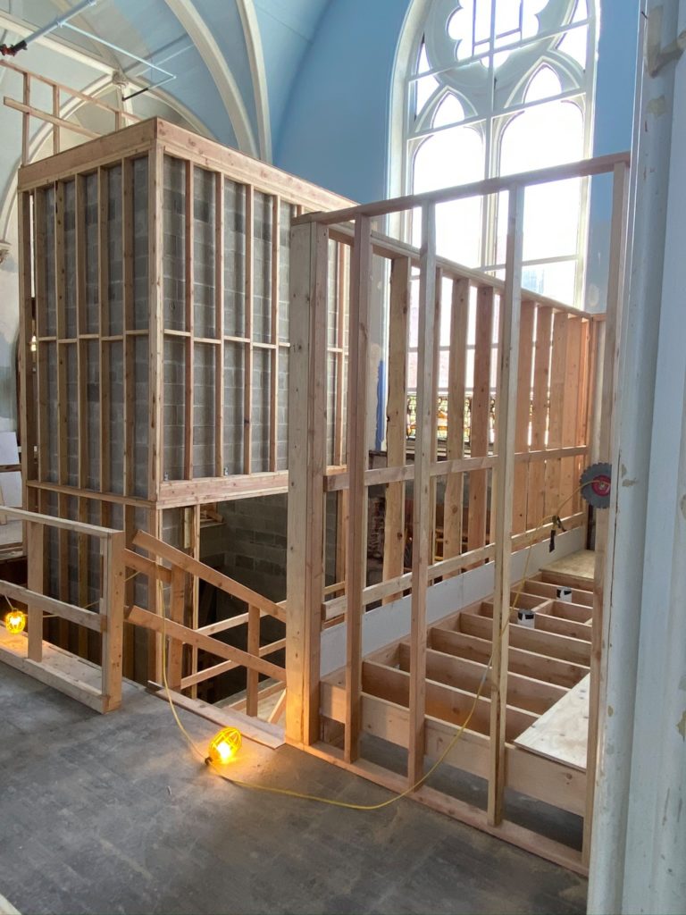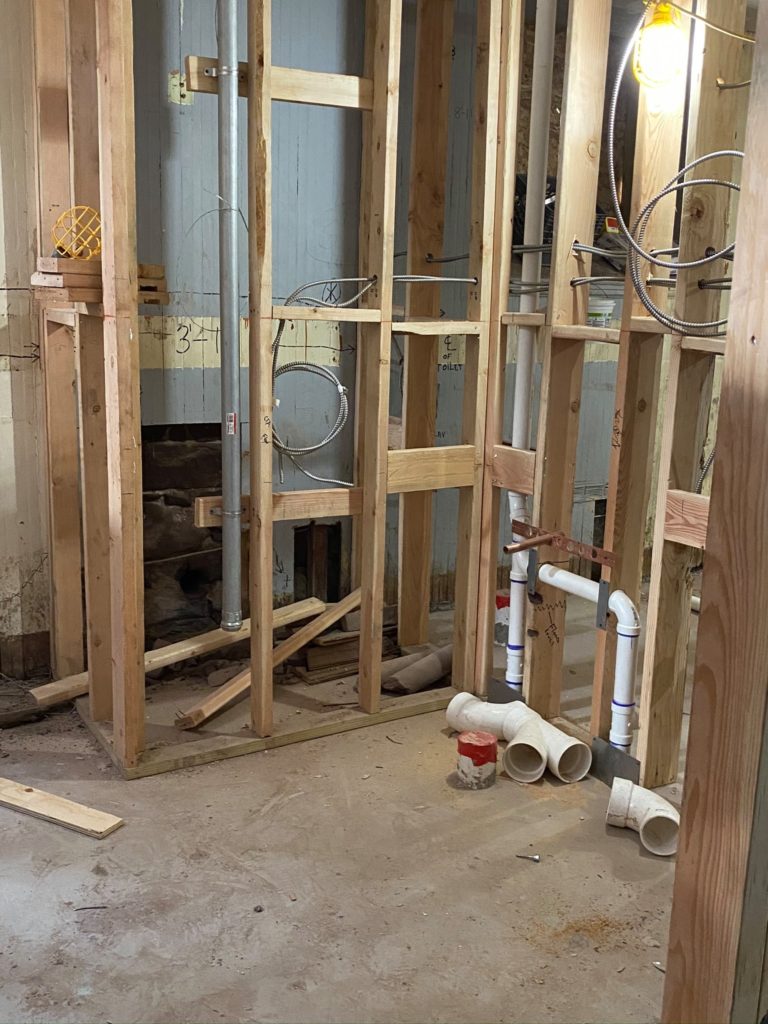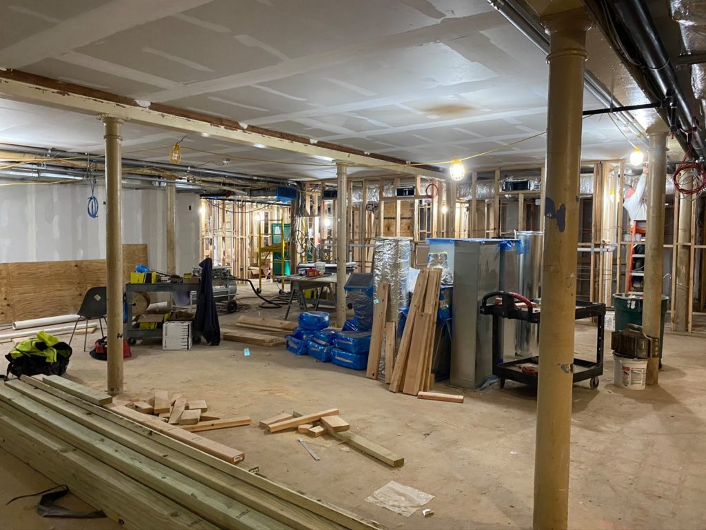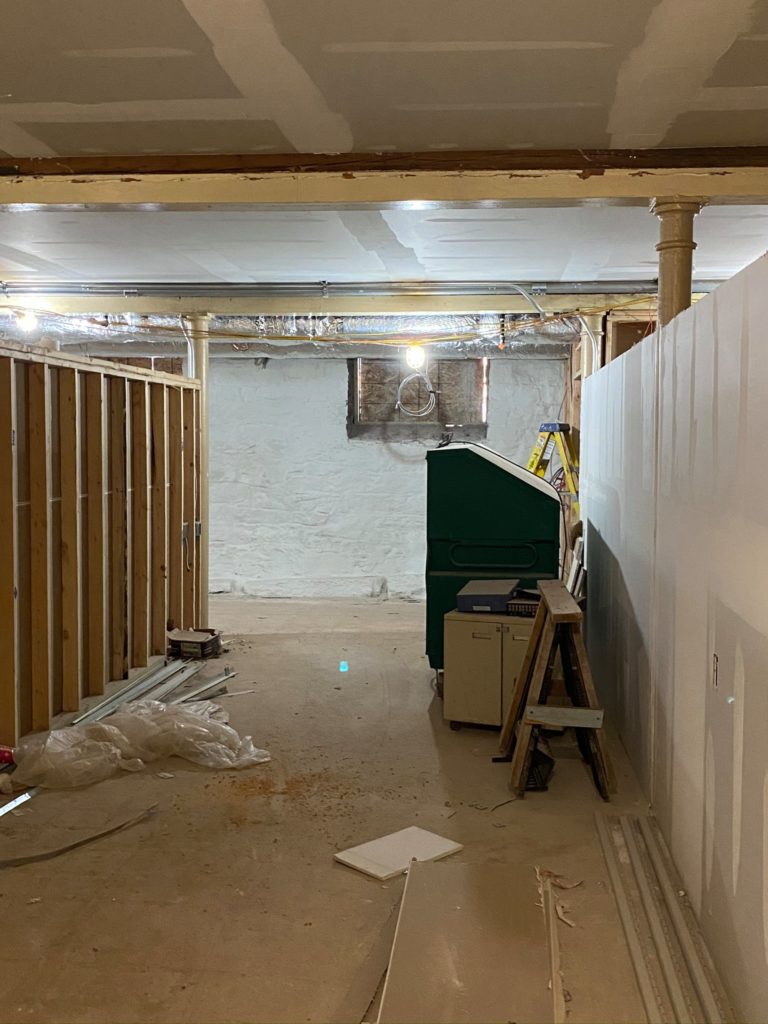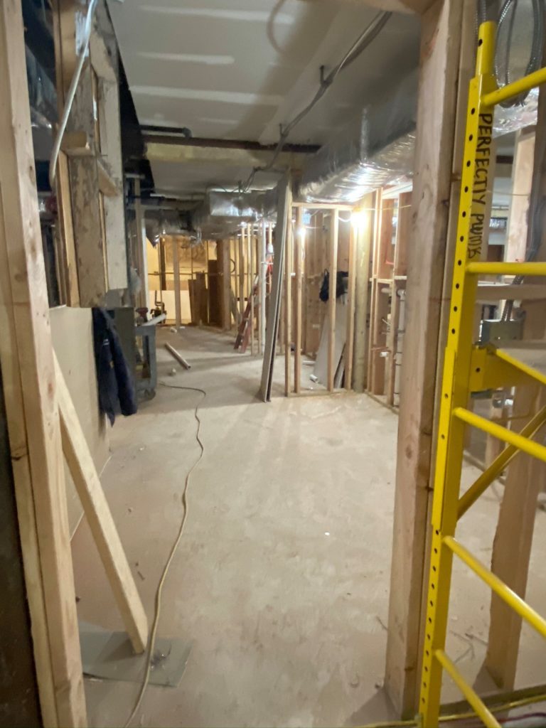 The architectural plans are now coming to life upstairs, as the plywood for the flooring is being put down, and framework for the case management offices, conference room, bathroom and medical clinic are on their way. Now that the stairs are completed, we can walk right downstairs rather than go around outside. Things continue to progress downstairs, and soon enough, our vision for this amazing project will be recognizable to everyone!
