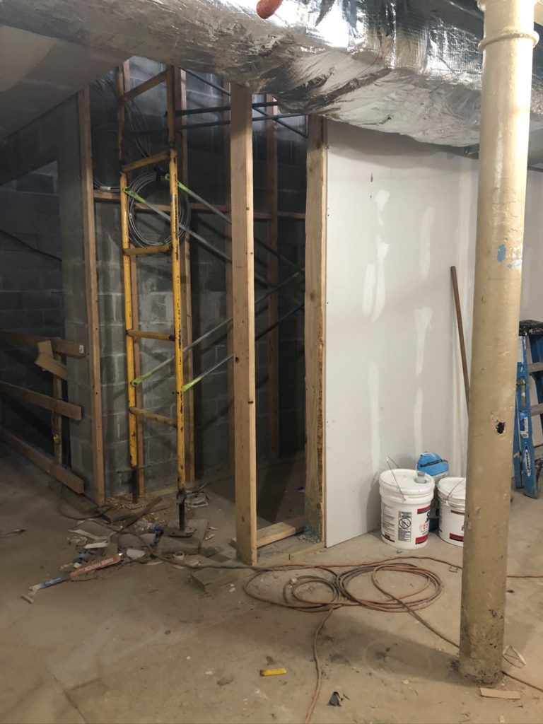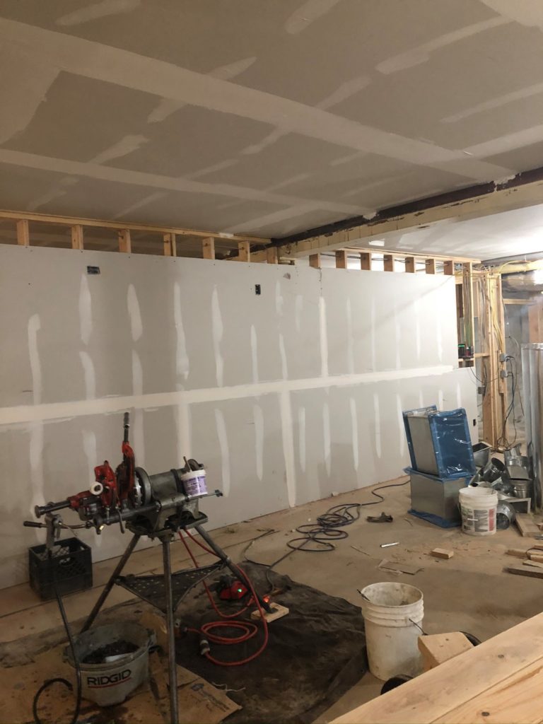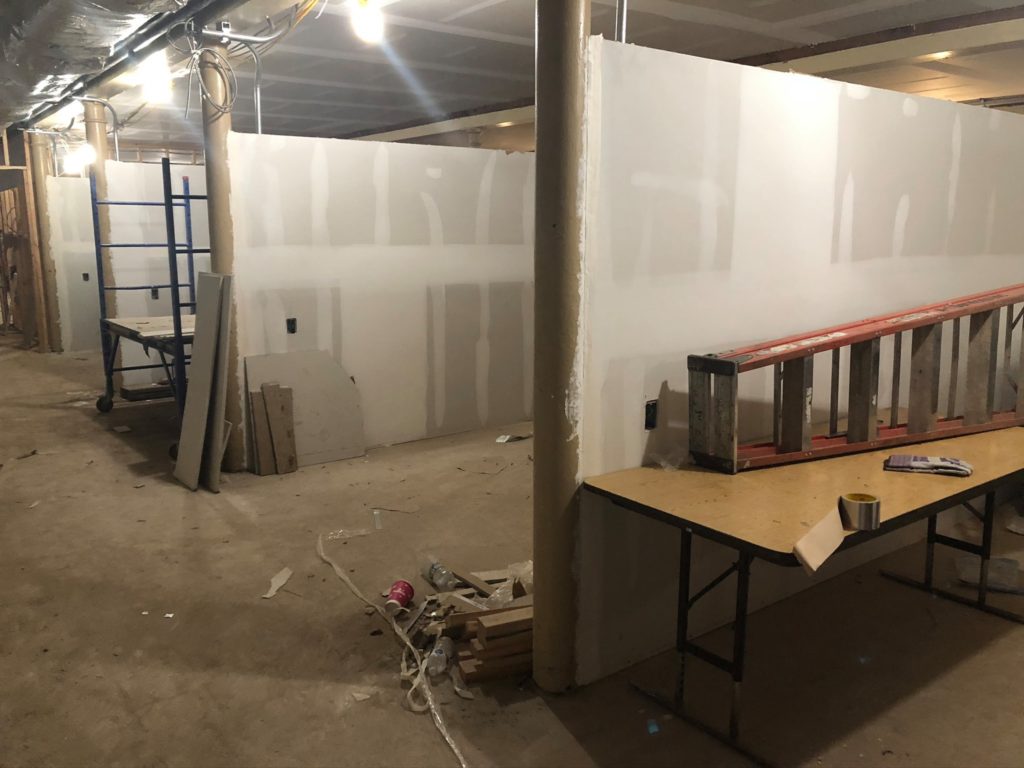 Much progress has been made since Christmas. Painting has begun upstairs, walls have gone up downstairs.