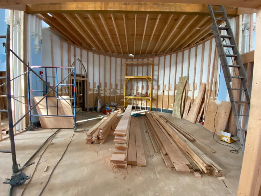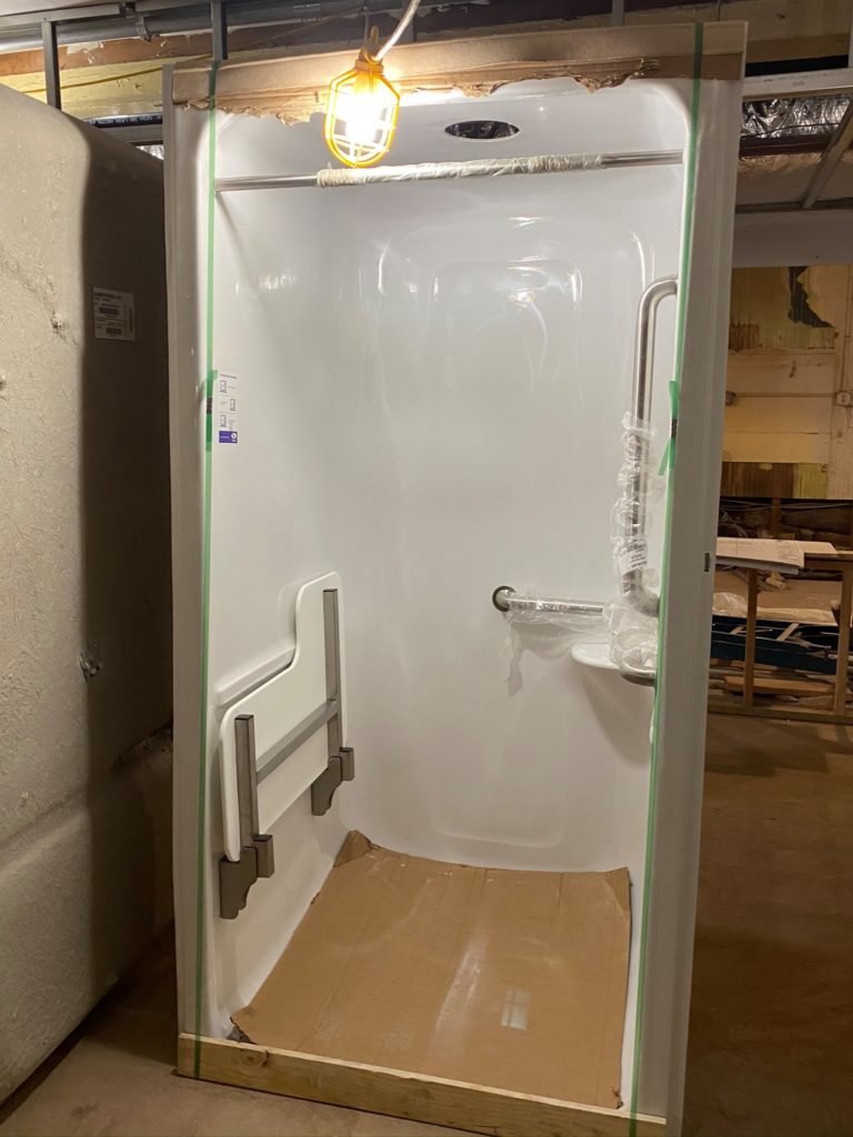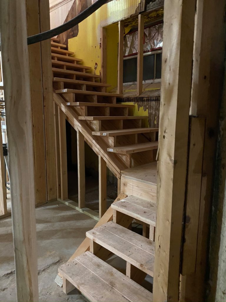 The end of Week 27 shows great progress both upstairs and down. The basement is nice and bright with new windows installed, and the shower units (a great improvement!) have been delivered. A new “old” staircase is now complete as well. Upstairs continues to become more beautiful with each passing week. Thank you for following on this journey with us!