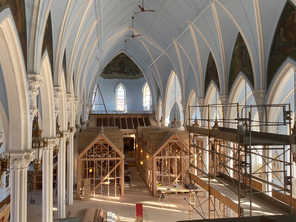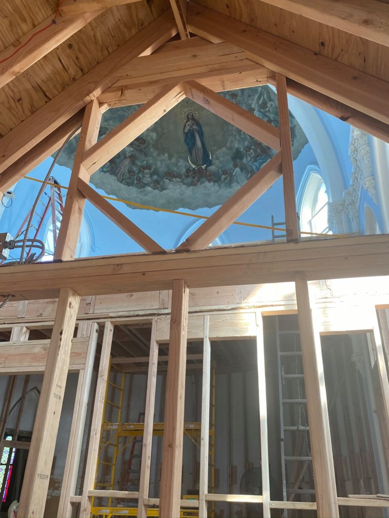 - The front of the conference room; the ceiling will be partly made of glass, so when in a meeting, one can take in the beauty of the renovated building.